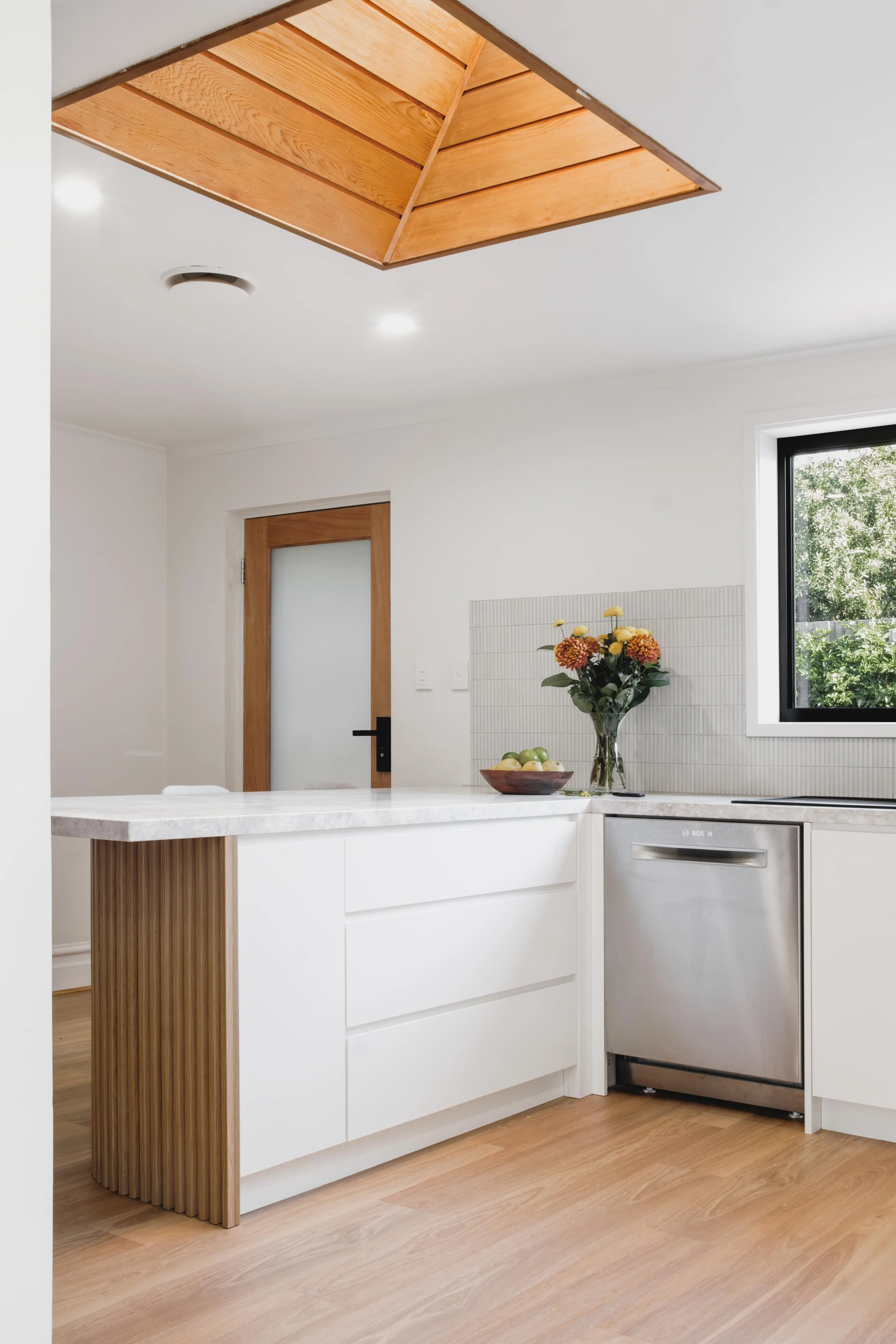 With a brief to maximise space and storage, merging the laundry space with the kitchen was a no-brainer. It's a small non-invasive option that results in the addition of a butler’s pantry, more bench space and a whole lot of storage!